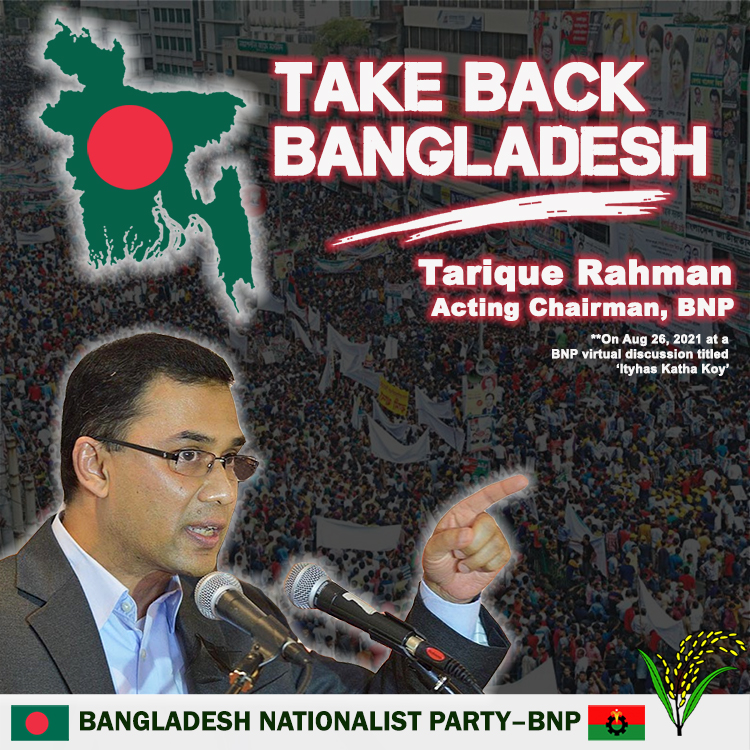 The Acting Chairman of Bangladesh Nationalist Party-BNP Mr. Tarique Rahman called on the nation to ‘Take Back Bangladesh’. He urged the nation to stand up for taking back voting rights.