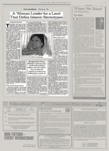 Conversations: Khaleda Zia; A Woman Leader for a Land That Defies Islamic Stereotypes