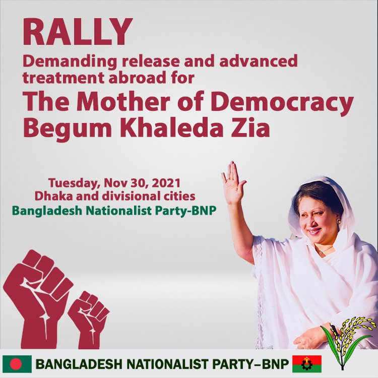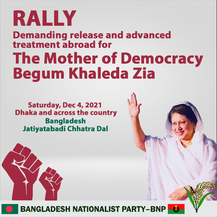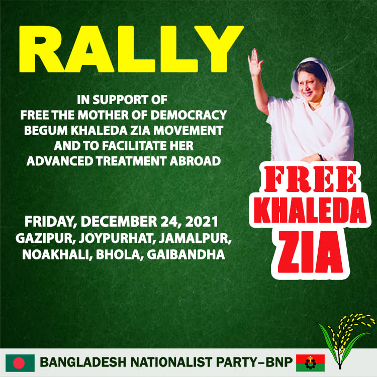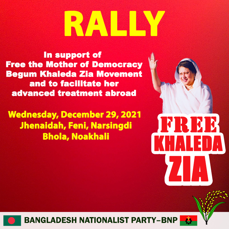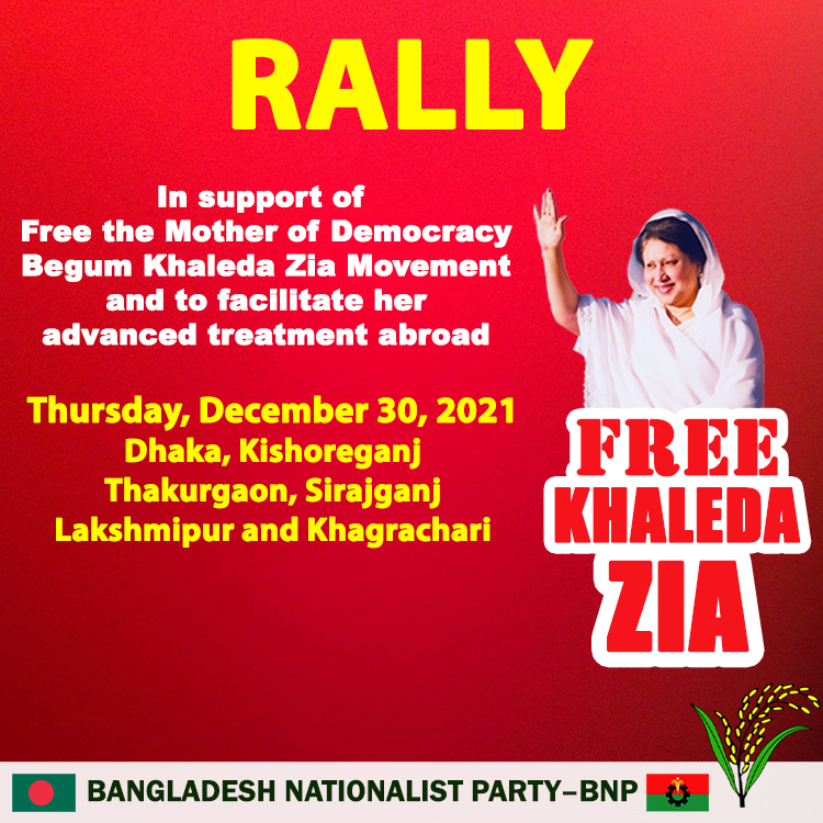 Rally In support of free the Mother of Democracy Begum Khaleda Zia Movement and to facilitate her advanced treatment abroad Thursday, December 30, 2021 Dhaka, Kishoreganj, Thakurgaon, Sirajganj, Lakshmipur and Khagrachari