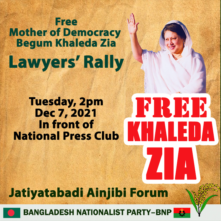 Tuesday, Dec 7, 2021, 2pm, in front of National Press Club Jatiyatabadi Ainjibi Forum